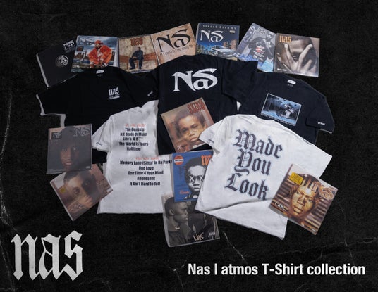 この度atmosは、1994年のデビューアルバムから30周年を迎えたヒップホップ界のレジェンド『NAS(ナズ)』の来日公演を記念し、”atmos Apparel × NAS”コラボレーションTシャツを発売いたします。