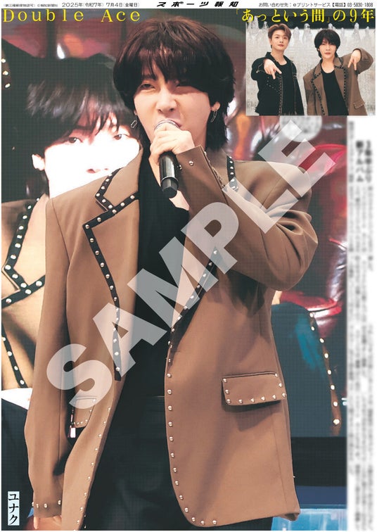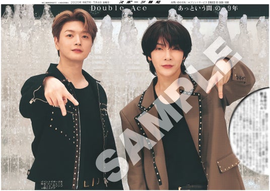スポーツ報知を発行する報知新聞社(代表取締役社長・長谷川剛)は新聞の一部紙面をコンビニエンスストアのマルチコピー機からプリントできる「スポーツ報知コンビニプリント」サービスをスタート。スポーツ紙ならではの大きな写真を使った紙面をプリント版として販売しています。7月4日付芸能面から韓国のボーイズグループ「超新星」のユナクとソンジェによるユニット「Double Ace」の紙面3種類を販売しました。
