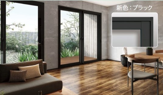 新築時にブラック色のサッシが主流だった築25年前後の住宅がリフォーム世代となりつつあるため、既設の外窓にカラーを合わせるニーズに対応し『ブラック色』を追加します。ほかにも近年増加しているブラック色をポイント使いするインテリアやリノベーション物件にも対応します。