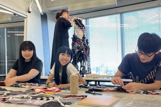また、展示発表だけでなく、ニューヨークを代表するファッション・アート専門の大学で、世界3大ファッションスクールの一つとして知られるパーソンズ美術大学の授業にも学生が参加しました。伝統を守るだけでなく、現代のマーケットに合ったものを提案する坂田織物による特別授業で、学生たちのグローバルな意識や視野を大きく広げる経験となりました。