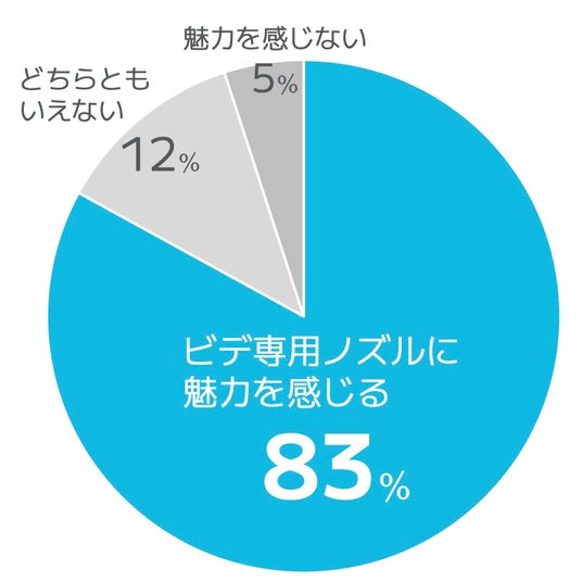 「ビデ専用ノズルに魅力を感じるか」というアンケートの質問に対しては、83%もの方が魅力を感じると答えています。