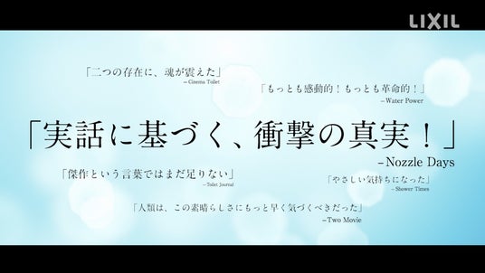 「INAXのシャワートイレのノズルは2本」という事実を、インパクトを持たせながらシンプルに伝えていくために、映画予告編風のムービーとして紹介しました。よく見るとトイレットペーパーが据えられていたり、タイトルの出演者がビデ専用ノズルの紹介になっていたりなど細かいところにもこだわっていますので、ぜひ何度も観てお楽しみください。