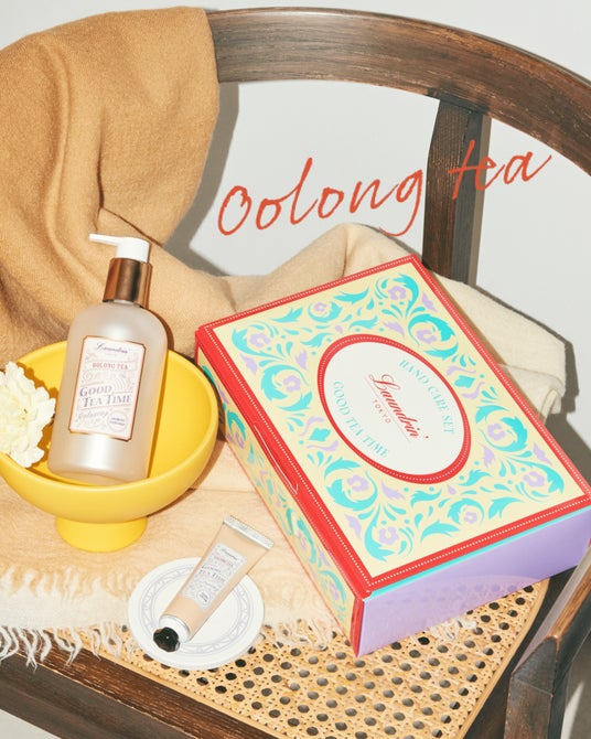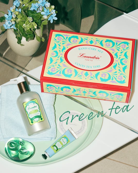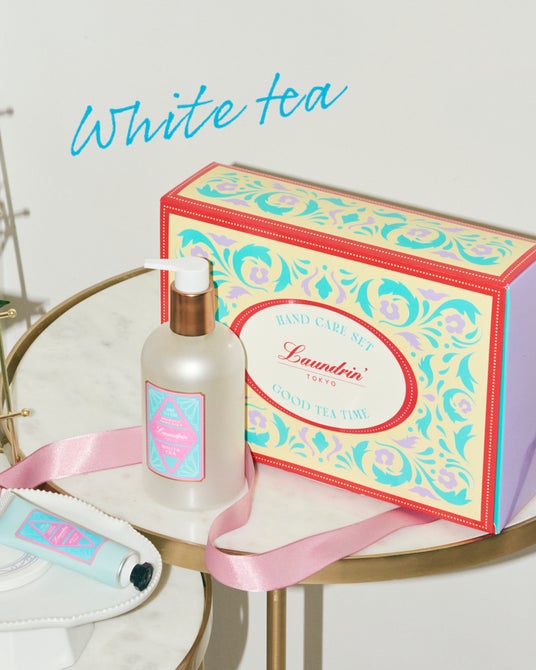 ランドリン初のハンドソープ、「GOOD TEA TIME」アロマティックハンドソープと人気のハンドクリーム、そしてソープトレーがセットになったギフトセットです。