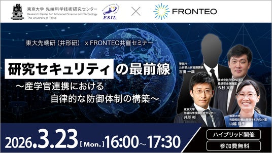 株式会社FRONTEO(本社:東京都港区、代表取締役社長:守本 正宏、以下「FRONTEO」)は、東京大学 先端科学技術研究センター(経済安全保障インテリジェンス分野)と共同で、2026年3月23日(月)にシンポジウム「研究セキュリティの最前線 ~産学官連携における自律的な防御体制の構築~」を開催します。本シンポジウムは、東京大学 先端科学技術研究センターにおいて、会場参加とオンライン配信(Zoom Webinars)によるハイブリッド形式で実施します。