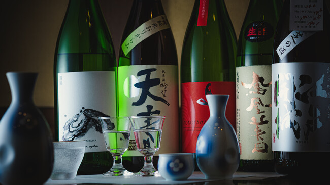 当店では、獺祭・而今・荷札酒・風の森など常時40種類の日本酒を取り揃えております。より日本酒を身近に楽しんでもらうため、ランチタイムにおちょこで楽しむ日本酒を一杯500円(税込)で提供いたします。