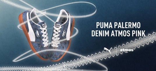 atmos pinkはPUMAの人気モデル”Palermo(パレルモ)”にトレンドのデニムとレースを掛け合わせた別注の「PALERMO ATMOS PINK」を発売いたします。