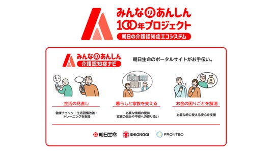 同プロジェクトは、朝日生命が外部企業と連携し、認知症の予防から発症後の介護支援まで包括的にサポートする「介護・認知症エコシステム」です。専用ポータルサイト「みんなのあんしん介護認知症ナビ」と、朝日生命の営業職員による伴走型のフォローアップを通じて、人生100年時代の「あんしん」をサポートします。