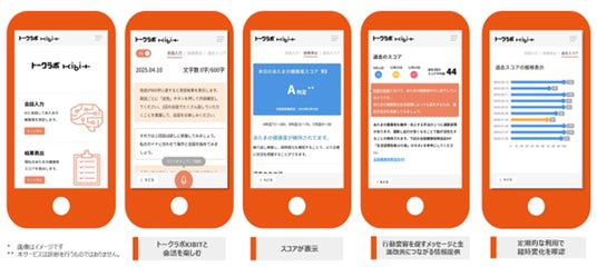 *「トークラボKIBIT」の「あたまの健康度」とは、AIが会話中の文脈的つながりと語彙の多様性を解析し、記憶力・言語理解力・情報処理能力を総合的な指標としてスコア化するものです。疾病の診断を目的としたものではありません。