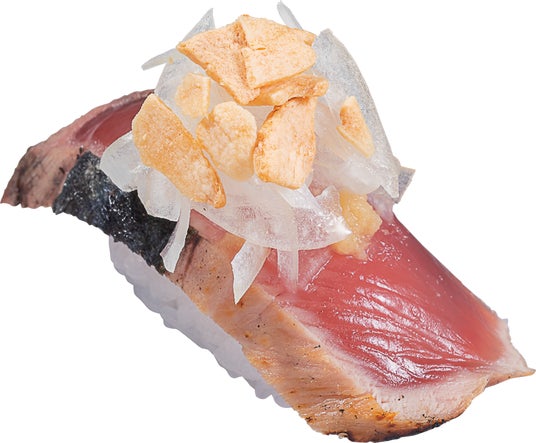 九州・福岡の郷土料理「ごま鯖」に仕立てたネタをにぎりでお楽しみください。