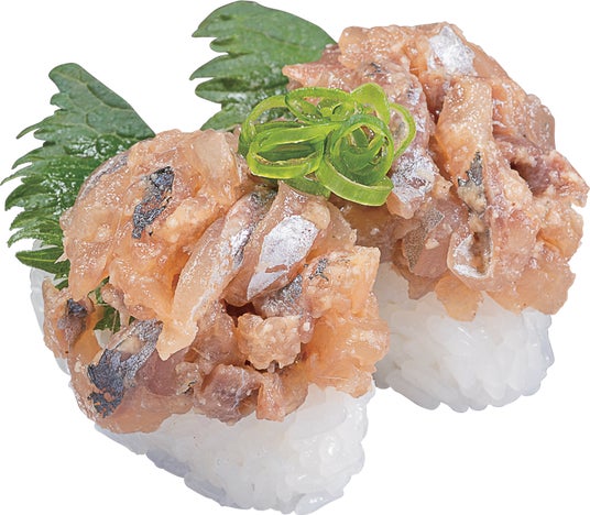 あじのたたきと生姜、だし醤油、味噌などでつくった「すし呑み」にもぴったりのにぎりです。
