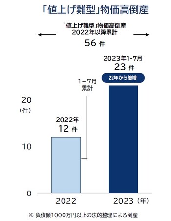 帝国データバンクは、2023年7月までに発生した「物価高倒産」のうち、取引先からの値下げ圧力等で価格転嫁できなかった「値上げ難」による倒産について調査・分析を行った。