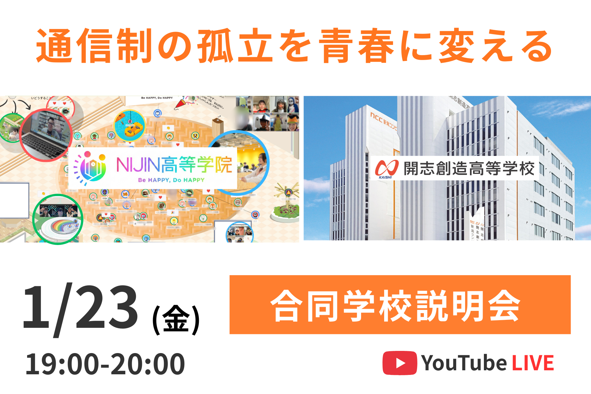 2026年4月に開校予定の通信制サポート校「NIJIN高等学院」は、連携校である広域通信制高校「開志創造高等学校」と合同で、オンライン説明会を開催いたします。