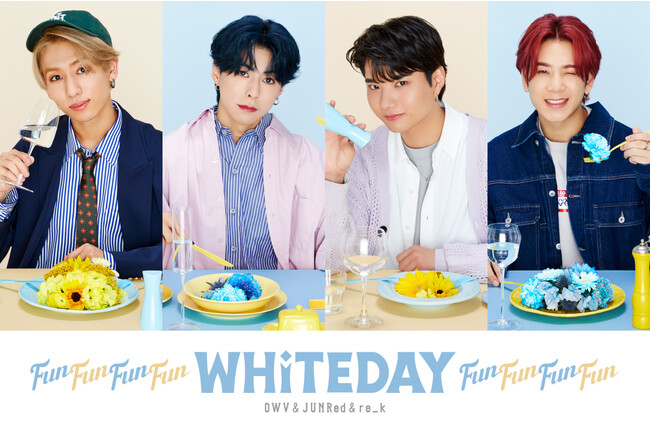 今回は「OWV と過ごす楽しい楽しい楽しい楽しい WHITEDAY」をテーマに、JUNRedとWEB限定レーベル re_k by JUNRedのアイテムをメンバー 4人が着用。期間中は店頭で OWVの4人がコーディネイトにまつわるコメント動画を公開し、Instagramではコーディネイトに投票すると、着用アイテムが抽選で当たるキャンペーンも実施します。