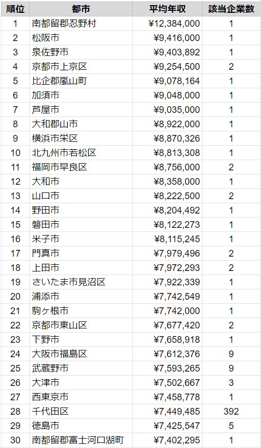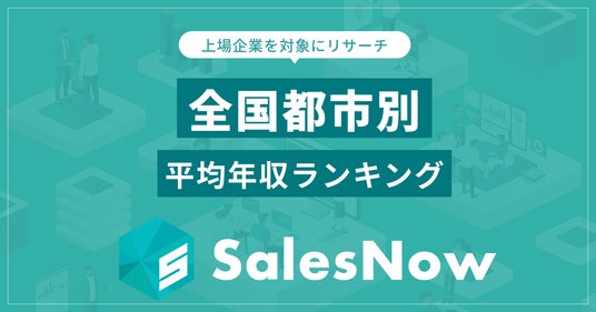 「誰もが活躍できる仕組みをつくる。」をミッションに掲げ、セールスチームの武器となるデータベース「SalesNow」を展開する株式会社SalesNow(本社:東京都渋谷区、代表取締役:村岡功規、以下「SalesNow」)は、国内540万社の企業情報を完全網羅した日本最大級のデータベース「SalesNow DB」より、上場企業を対象とした都市別の平均年収ランキングを公開しました。今回のランキングでは、従業員数を加味せずに、企業本社所在地をもとに単純平均で算出しています。