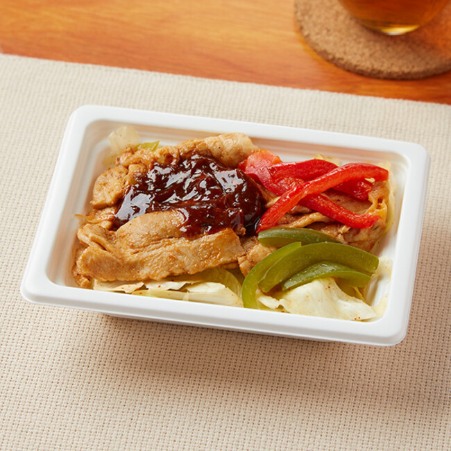 【内容】にんにく・酒で下味を付けた豚バラ肉を、豆板醤・甜麺醤・「丸鶏だし」の旨味が特長の中華湯などで炒め、ごま油・香味ラー油を加えることで香りをつけました。キャベツは唐辛子で和え、辛味と食感をプラスしています。