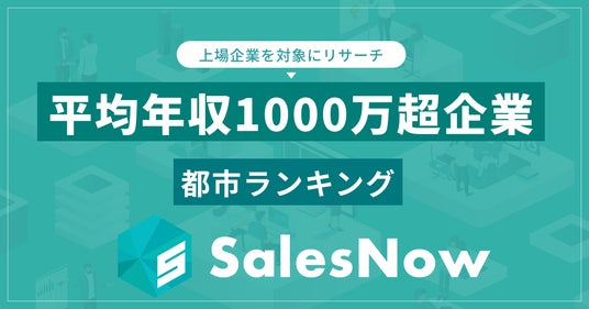「誰もが活躍できる仕組みをつくる。」をミッションに掲げ、セールスチームの武器となるデータベース「SalesNow」を展開する株式会社SalesNow(本社:東京都渋谷区、代表取締役:村岡功規、以下「SalesNow」)は、国内540万社の企業情報を完全網羅した日本最大級のデータベース「SalesNow DB」より、平均年収1,000万円を超える上場企業が多い都市のランキングを公開しました。