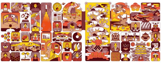 舘鼻 則孝 氏の新作のアート作品約80点が登場するほか、初めて福岡・天神を訪れる人はもちろん、愛着をもつ地元の人も楽しめるよう、福ビル外観モチーフや天神コアの意匠を使用するなど、継承や新しい視点を取り入れ、天神1丁目である場所の存在意義を再定義できるような仕掛けに。八女の和紙などの伝統工芸や福岡のアーティスト、写真家による作品も多数登場します。