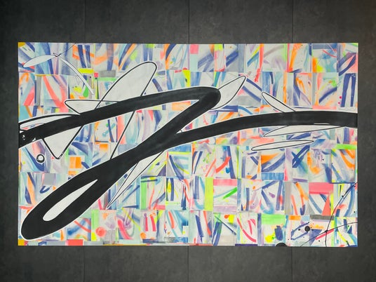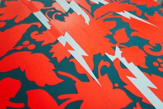Studio PARKER 作品イメージ 八女の和紙にNIC※のゼブラ柄を、福ビルのタイルをスタンプして柄をつくった作品