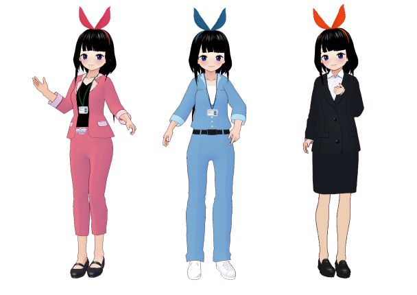 各社によってカラーバリエーションが異なるリクルートスーツ・作業着・カジュアルスーツ衣装の制作を、ゲームクリエーター科ゲームグラフィックコース1年生9名が担当しました。