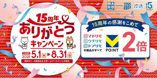 YKK AP株式会社(本社:東京都千代田区、社長:魚津 彰)とパートナーシップを結び全国で展開している窓リフォームのお店「MADOショップ」は、15周年を迎えました。そこで、2013年から継続して取り組んでいる暑い夏場を涼しく快適に乗り切る夏のリフォームの提案活動『涼活』と、15周年の感謝の気持ちを込めた「涼活・15周年ありがとうキャンペーン」を5月1日~8月31日の期間で実施します。また、4月24日から涼活サイトをリニューアルし、暑い季節を快適に過ごす涼活のススメやお得なキャンペーン情報、夏のおすすめリフォームを紹介します。