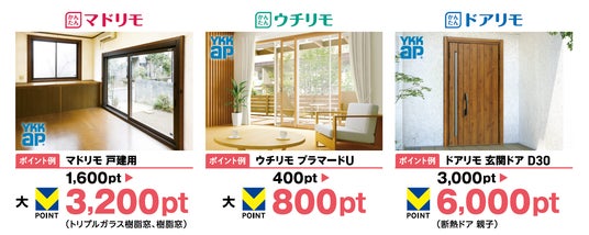 特典:対象商品「マドリモ」「ウチリモ」「ドアリモ」は通常設定の2倍のVポイントを付与