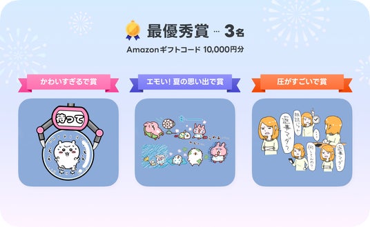 LINEスタンプ公式Xで開催した「#スタンプアレンジ選手権」も多くのユーザーに参加いただき、「かわいすぎるで賞」「エモい!夏の思い出で賞」「圧がすごいで賞」の3つそれぞれのお題に対して、最優秀賞に選ばれた合計3名の受賞者を発表します。
