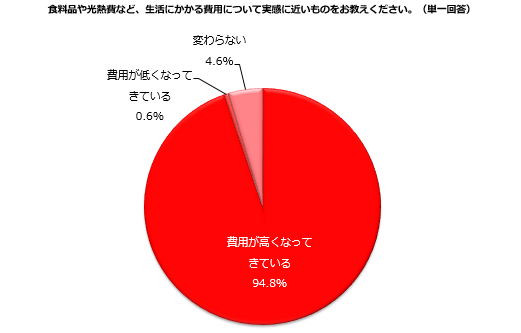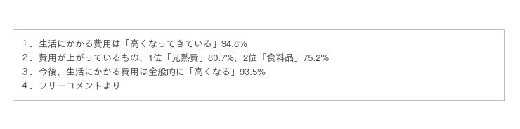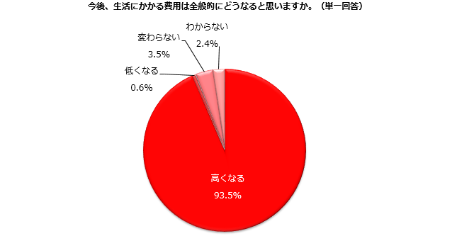 3.今後、生活にかかる費用は全般的に「高くなる」93.5%