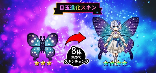 アイテム『進化の書』を使用することでビジュアルが変化する『進化スキン』が一定確率で獲得できる『進化ガチャ』に新しいスキンを追加!新進化スキン「ステラフェアリー」が登場します。