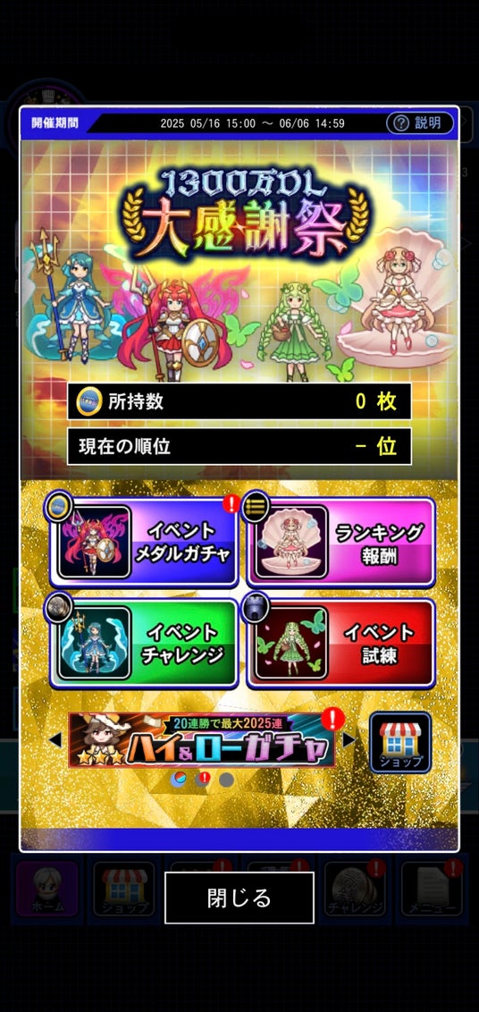 - 最大2025連引ける!?ハイ&ローガチャ登場!