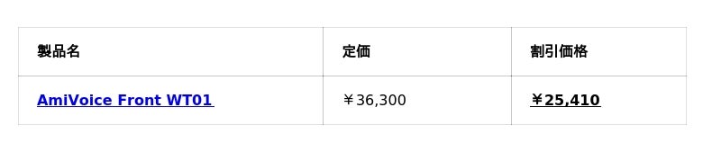 株式会社アドバンスト・メディア(本社:東京都豊島区、代表取締役会長兼社長:鈴木清幸 以下、アドバンスト・メディア)は、2026年1月19日(月)より、音声認識に特化したマイクデバイス「AmiVoice Front WT01」の30%割引キャンペーンをAmazonにて開催いたします。