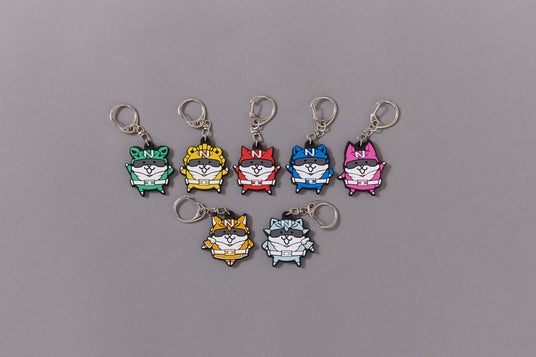 ラバーキーホルダー にゃんこレンジャー ゴールドにゃんこ / シルバーにゃんこ 各1,100円 (税込)