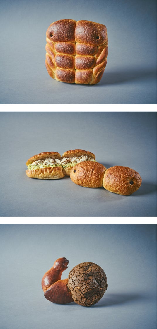血管のようなヒビがパンに刻まれております。三角筋の部位には、ほうじ茶で追いタンニングを行いました。