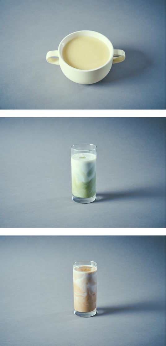 抹茶と牛乳のラテに、さらにスキムミルクを加えました。