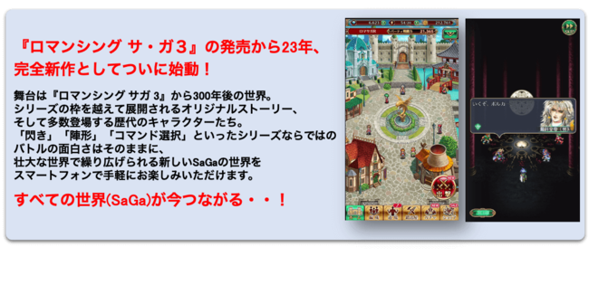 なお、「ロマンシング サガ リ・ユニバース」は、アカツキとスクウェア・エニックスとの共同開発による、23 年ぶりとなる「ロマンシング サガ」完全新作の新規ゲームアプリです。