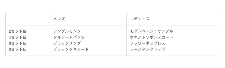 ・10回プレイ時、2・4・6・8セット目は新作ウェアが確定!