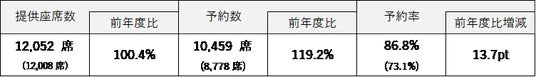※ 日本航空とのコードシェア分については、提供座席数および予約数に含まれておりません。