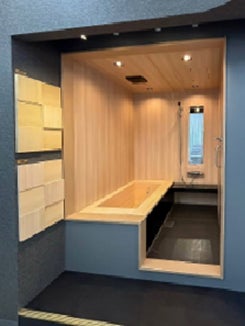 建築家が考える最上級のリラクゼーション空間を提供するRICHシリーズ、金沢の高級旅館の雰囲気を感じるモデルハウス内に雅月の浴室をご採用いただきました。天然木の浴槽はまさに旅館のいるかのようなくつろぎをもたらすことでしょう。