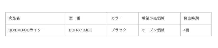 「BDR-X13JBK」商品サイト : https://jpn.pioneer/ja/pcperipherals/bdd/products/bdr-x13jbk/?ad=pr