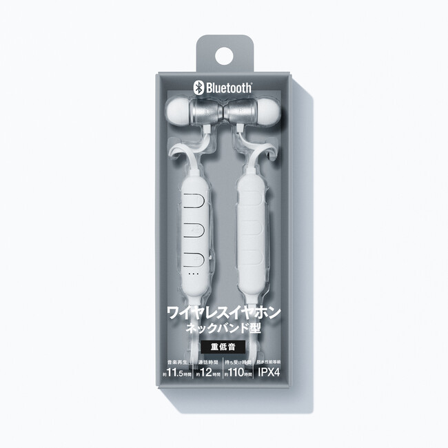 【商品名】ワイヤレスイヤホン ネックバンド型 白