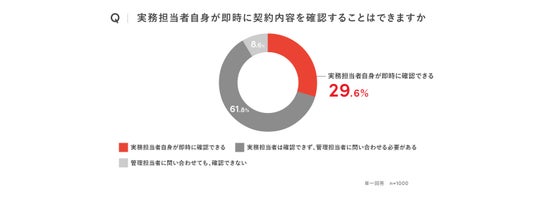 実際に営業や調達といった実務担当者自身が、契約書に記載された取引条件を即時に確認できるかを聞いたところ「実務担当者自身が即時に確認できる」と回答した人は3割未満でした。