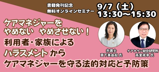 『ケアマネ必携!もう悩まない あきらめない 利用者・家族からのハラスメント ―よりよい関係づくりのために今からできる法的対応と予防策―』・下記URL内のフォーム(本セミナー特設サイト)からの申込に限