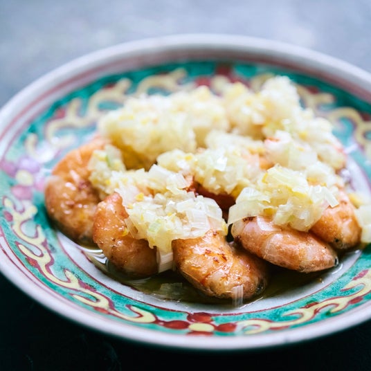 えびの塩焼きに「ねぎレモン醬」で