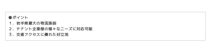 なお、当施設は岩手県において当社初のマルチテナント型物流施設開発となります。