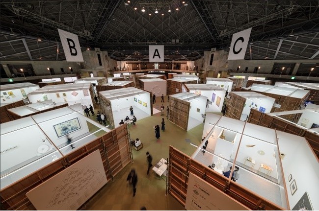 会場デザインは前回と同じく周防貴之(SUO代表)が担当します。昨年は、アートフェアの会場でありながらも街の中を巡るようなレイアウトで斬新な会場構成が来場者や出展者から好評をいただきました。今年はバラバラに配置されたブースを巡っていく形は保ちつつも、ブース間のスペースに新しいアイデアが盛り込まれたレイアウトにかわり、昨年同様できるだけ独立した環境で作品を展示できる場所を保ちつつ、会場全体が一つの場所として体験できるような、より一体化された会場構成を試みます。