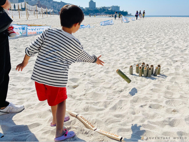 フィンランド発祥のスポーツ「モルック」を竹で体験! 数字が書かれた竹を倒して得点を狙うスローイングを体験いただけます。(各回30分間)