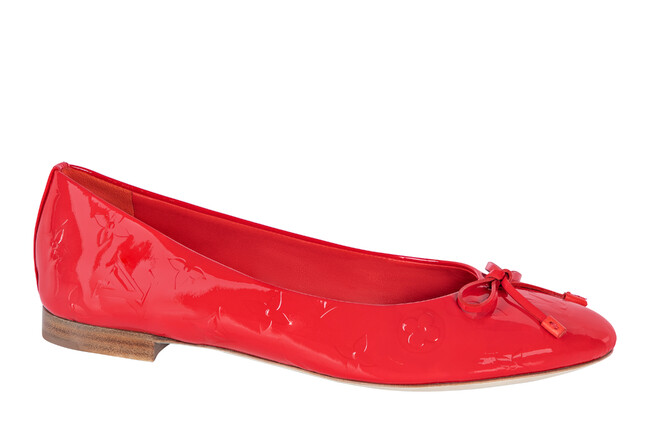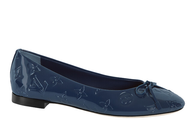 光沢感を放つパテントカーフレザーで仕立て、エンボス加工で全面に施したアイコニックなモノグラム・パターンが個性を放つデザイン。ラウンドトウとローカットのフロントをフェミニンなリボンで彩り、タイムレスなバレエシューズをルイ・ヴィトンならではの雰囲気にアップデートしました。柔軟性の高いレザーのアウトソールがデザインを完成させます。