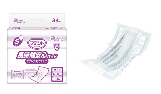 2.パッドタイプの大人用紙おむつ「アテント Sケア 長時間安心パッド ダブルブロックタイプ」