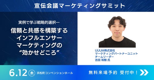 UUUM株式会社(本社:東京都港区、代表取締役 社長執行役員: 梅景 匡之、以下UUUM)は、2025年6月12日(木)に開催される株式会社 宣伝会議主催「宣伝会議マーケティングサミット」に登壇いたします。