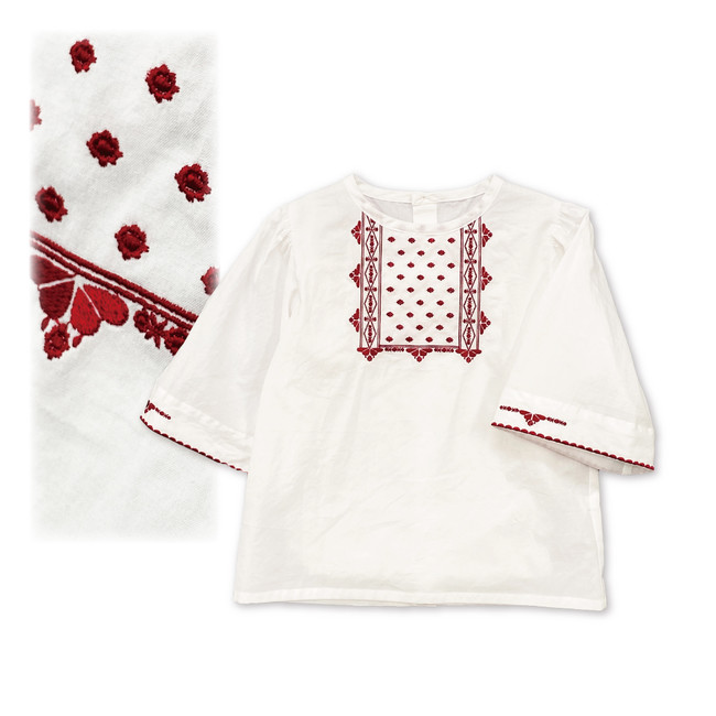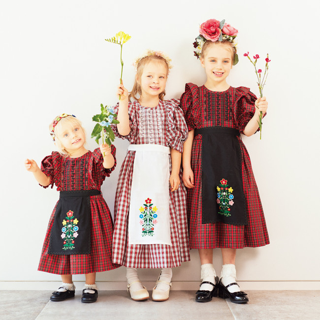ブルガリアで着られている民族衣装は、自然界からインスピレーションを得たデザインで、豪華で見事な装飾が施されています。今回、刺繍や柄、色合いにこだわり、子どもたちが幸せな春を過ごせるような、華やかで愛らしい雰囲気漂うデザインのアイテムをつくりました。