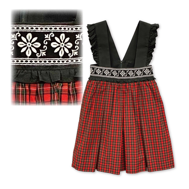 ウエスト部分にお花をモチーフにした刺繍を施すことで、ポイントになり全体を引き締めています。